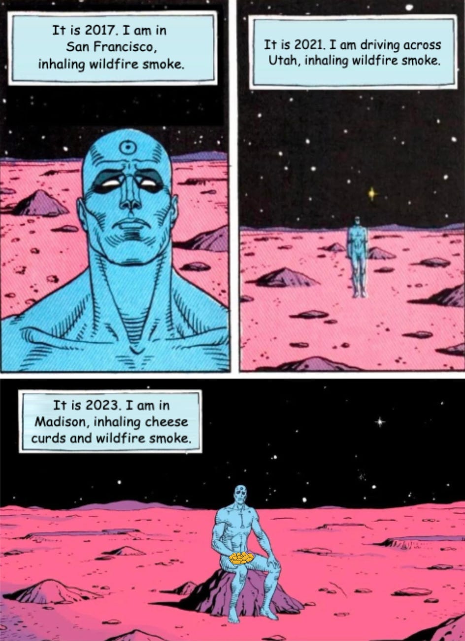 A month of wildfire smoke is bad anywhere you go, but in the midwest it’s worse. In California the weather’s nice for most of the year. Here, June carries special weight.